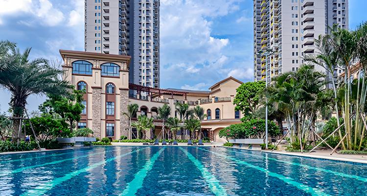 海南恒大海口湾康养度假基地位于海南省海口市龙华区杜鹃路与海棠路交界处的海口湾,南邻滨海大道,北靠滨海休闲公园,西邻秀英港口国际游艇码头,距1400亩绿林万绿园约1公里。总占地面积5万平方米,按四星级标准投资兴建的养生度假酒店式公寓,拥有200多间客房,主要为标准双人间、大床房、一居两居套房。配有中西自助餐厅、典雅大堂,游泳池、花园散步小道、健身房等文体娱乐配套,特为康养度假客户打造一个高雅温馨舒适的休闲度假基地。
